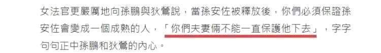 就在网友以为狄莺真的白花了钱却救不了儿子的时候,美国联邦法庭经过2个小时的审理,当庭宣判孙安佐“刑满获释”。现在已经进入“移民遣返”程序阶段,只要再经过4到6周时间,孙安佐将被遣送回台湾。