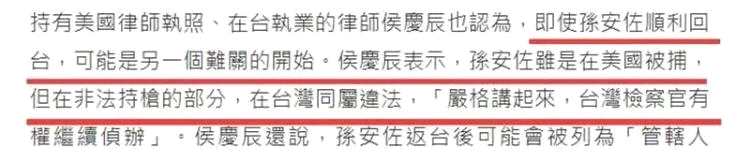 虽然之前有律师称孙安佐的持枪行为在台湾亦属违法,“台湾检察官有权继续侦办”,孙安佐可能被列为“管辖人口”。