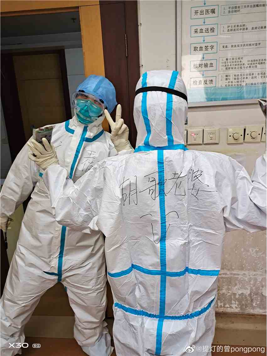 就在2月17日,有媒体报道,一位网名叫“提灯的曾pongpong”在自己的防护服上写下了“胡歌的老婆”这几个字,并将照片发到了网上。