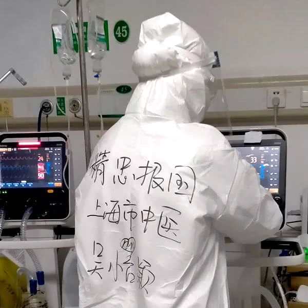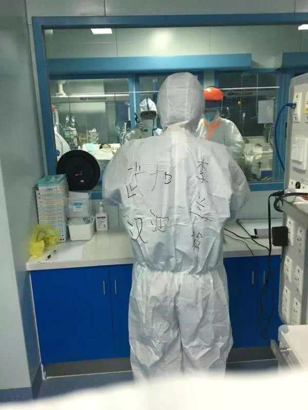 其实,在医院的病房当中,还有很多这样的暖心话语出现在防护服上,李兰娟院士在自己的防护服上写下了“武汉加油!”来为病人打气加油!