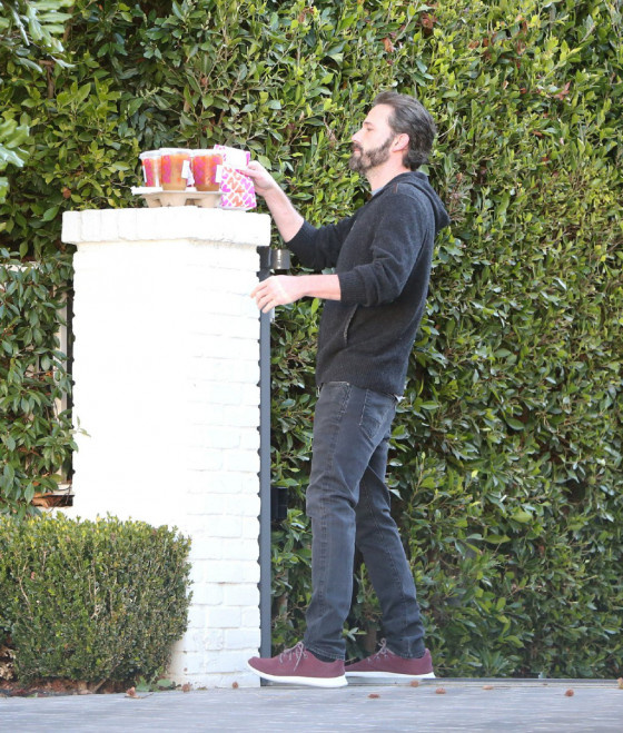 本·阿弗莱克豪宅门口拿外卖 胡子拉碴不修边幅