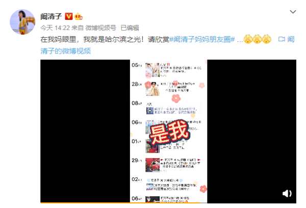 阚清子在听完徐冬冬的脱口秀之后,笑称“我也是哈尔滨之光”,有一个和徐冬冬妈妈一样的“亲妈粉”。节目中阚清子表示“我妈的朋友圈就是我的宣传网站”,节目播出之后,阚清子也在社交平台晒出了妈妈的朋友圈,满屏都是宣传阚清子的内容,比粉丝还专业,简直称得上是阚清子的“头号迷妹”,网友纷纷表示:“这是真的妈妈粉”、“女儿就是妈妈的骄傲”,“阚清子妈妈朋友圈”也成功登陆微博热搜,引发热议。