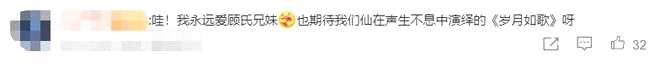 网友看到这波联动后也纷纷留言评论:“哇!我永远爱顾氏兄妹!”“爷青回!”“我们永远在你身后!”......