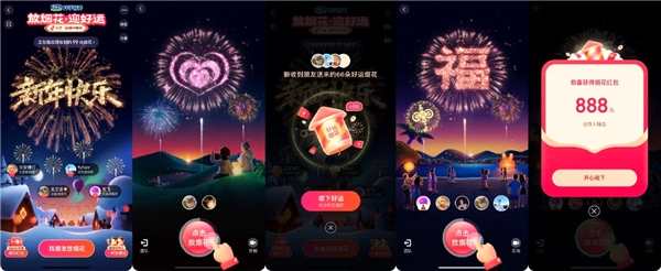 放烟花则延续了2022年的玩法优势,持续为大家带来惊喜福利。1月13日至除夕,网友可把自己定制的好运烟花送给朋友,传递新年好运领取烟花红包;除夕前每晚7点,和朋友2人一起放烟花,抢最高888元红包;除夕11点开始通过“点点点”放烟花抢红包,点击频率越高,烟花样式越绚丽;和家人朋友最多5人一起放烟花,有机会解锁隐藏款烟花。